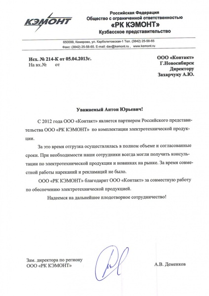 Благодарственное письмо от "Томская Строительная Сервисная Компания"